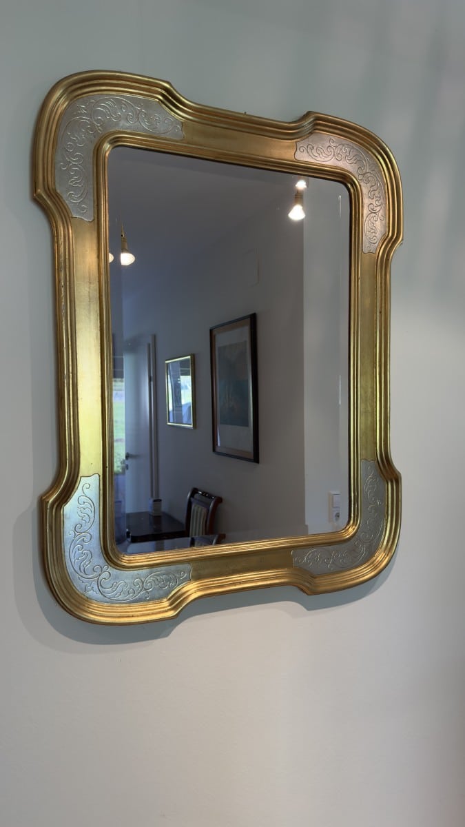• Goldfarbener Französischer Wandspiegel mit Facettenschliff B 90 cm H 70 cm