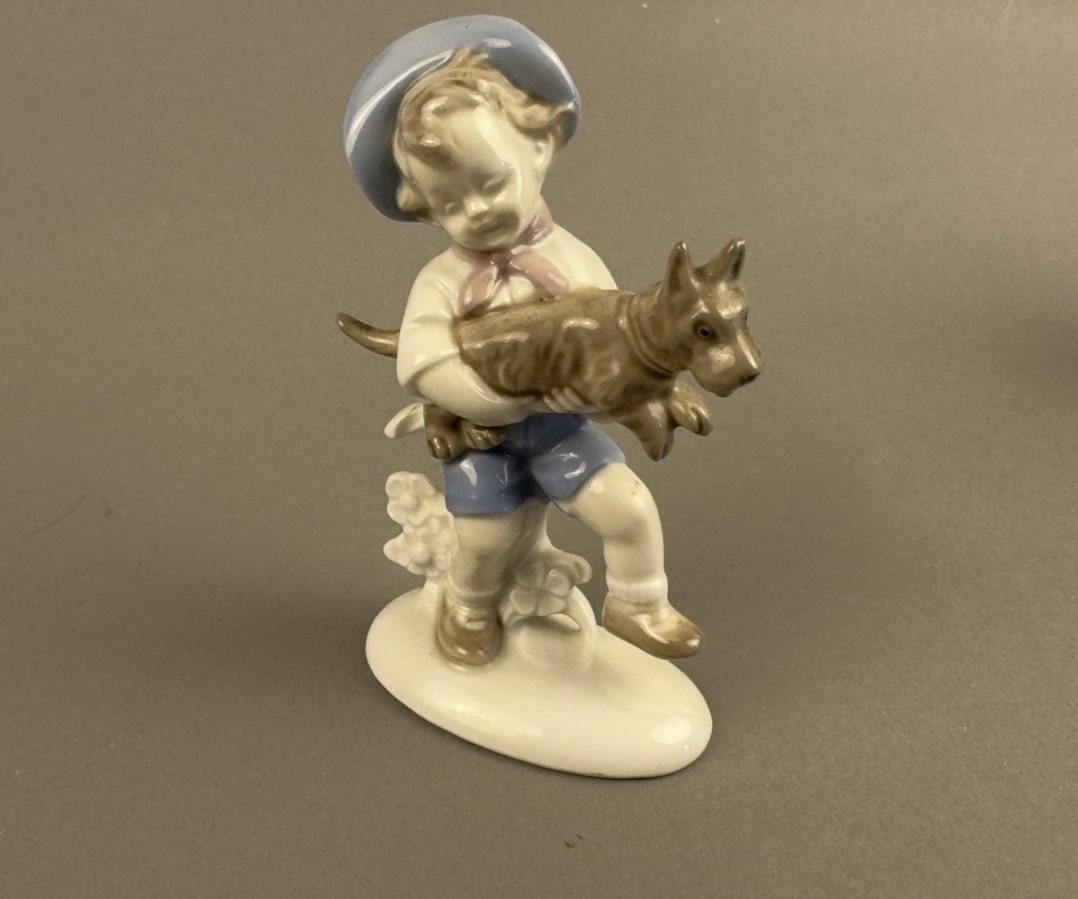 •  Lippelsdorf Porzellan Junge mit Schnauzer-Hund