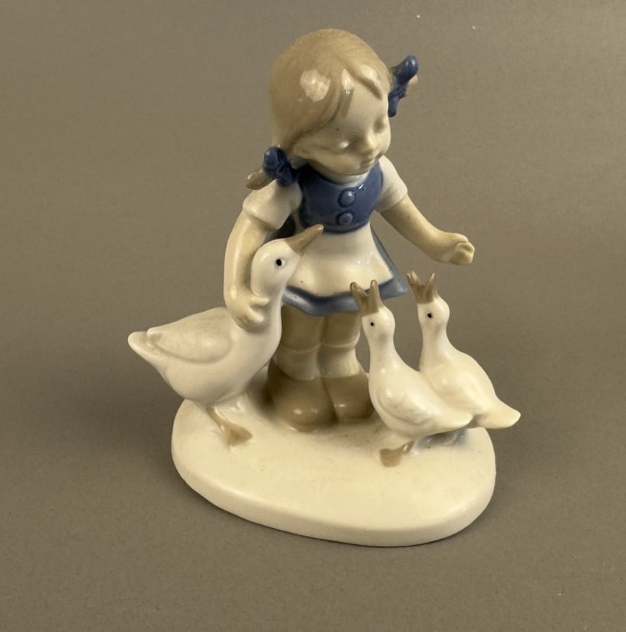 • Lippelsdorf Keramik Figur Mädchen mit Enten und Gans