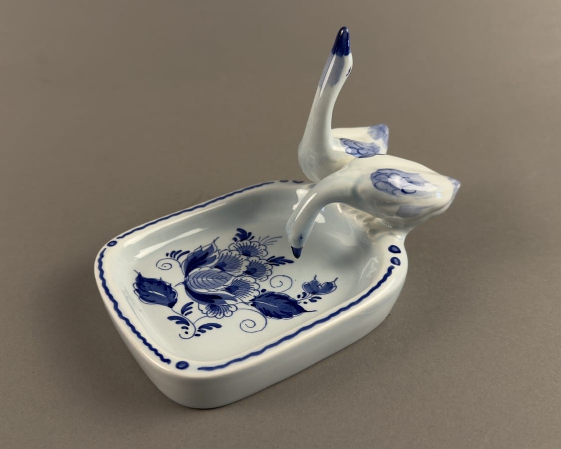 • zwei Schwäne mit Schale im klassisches Blue Delft Design, Delft Keramik 16×11 cm