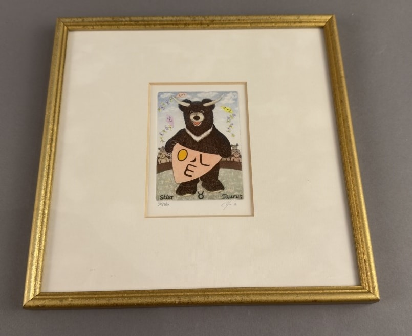 • Hauck Farbradierung Sternzeichen Stier. 25×25 cm.