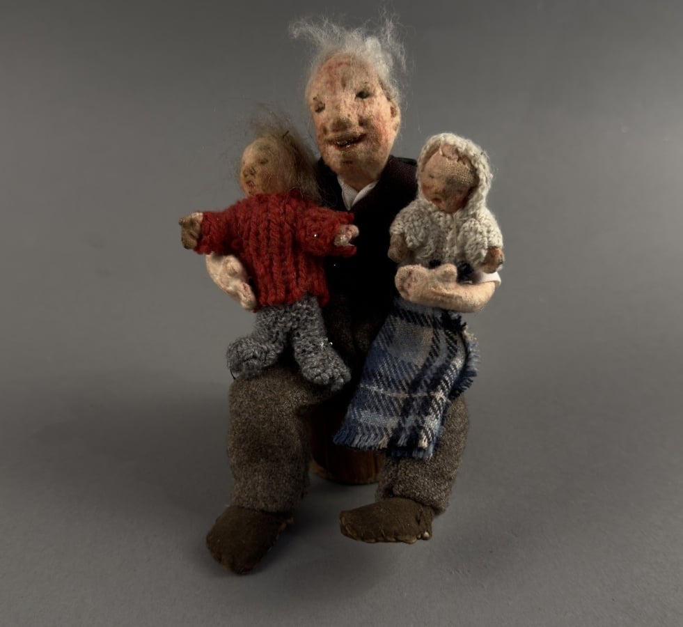 • Elli Riehl (Villach 1902-1977) „Opa mit Enkerl“, Auftragsarbeit von Frau Elli Riehl, jedoch ohne Plomben, Höhe 20 cm