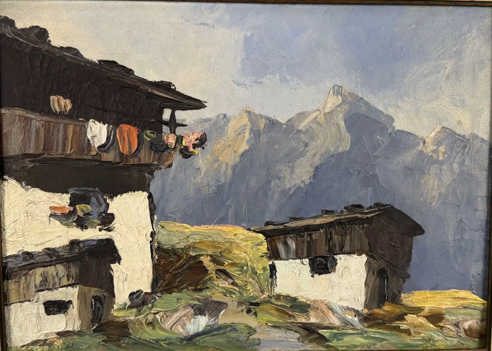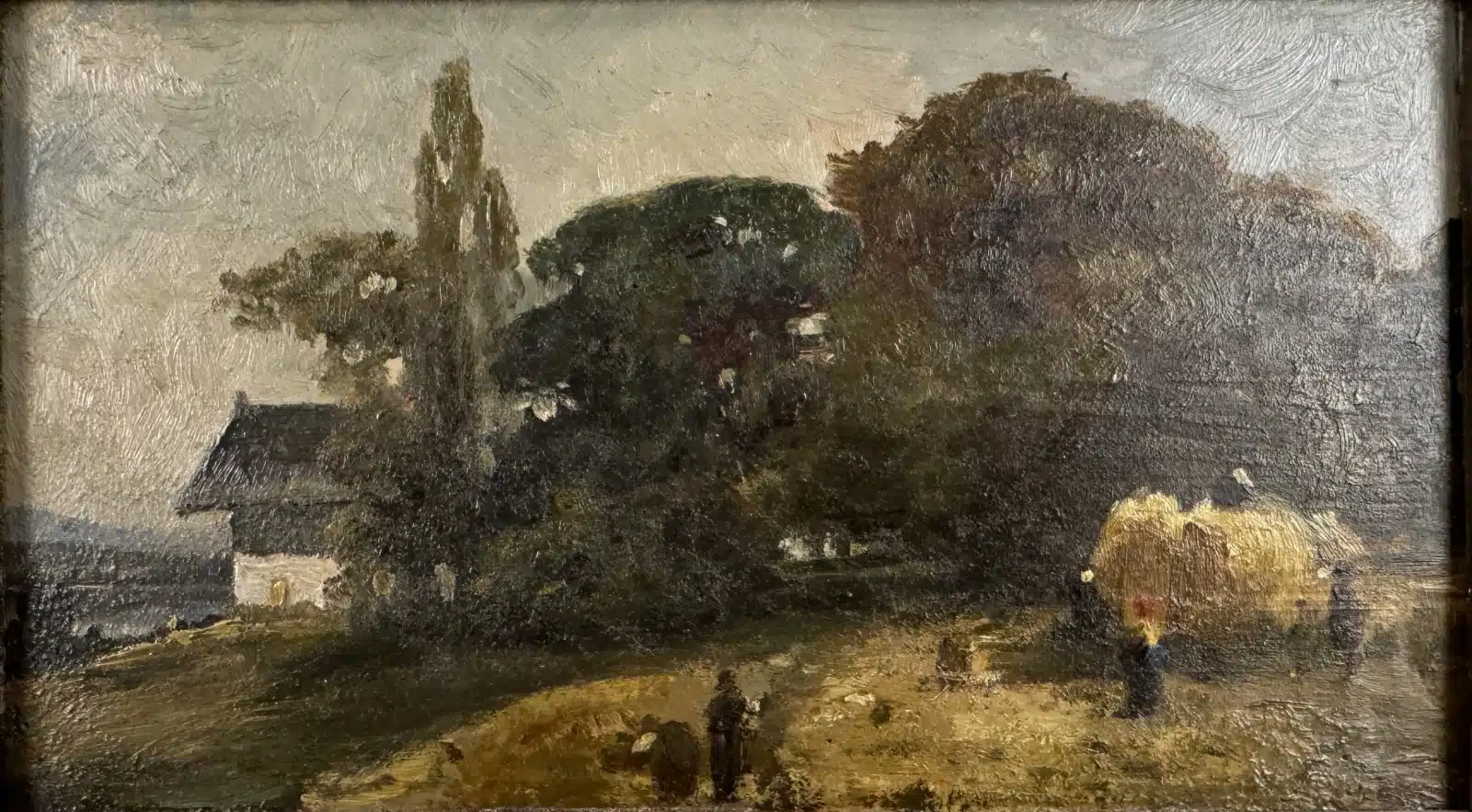 • Ludwig Willroider (Villach 1845-1910 Bernried) Bauernhof Landschaft, Öl auf Platte, gesamt 25×16 cm