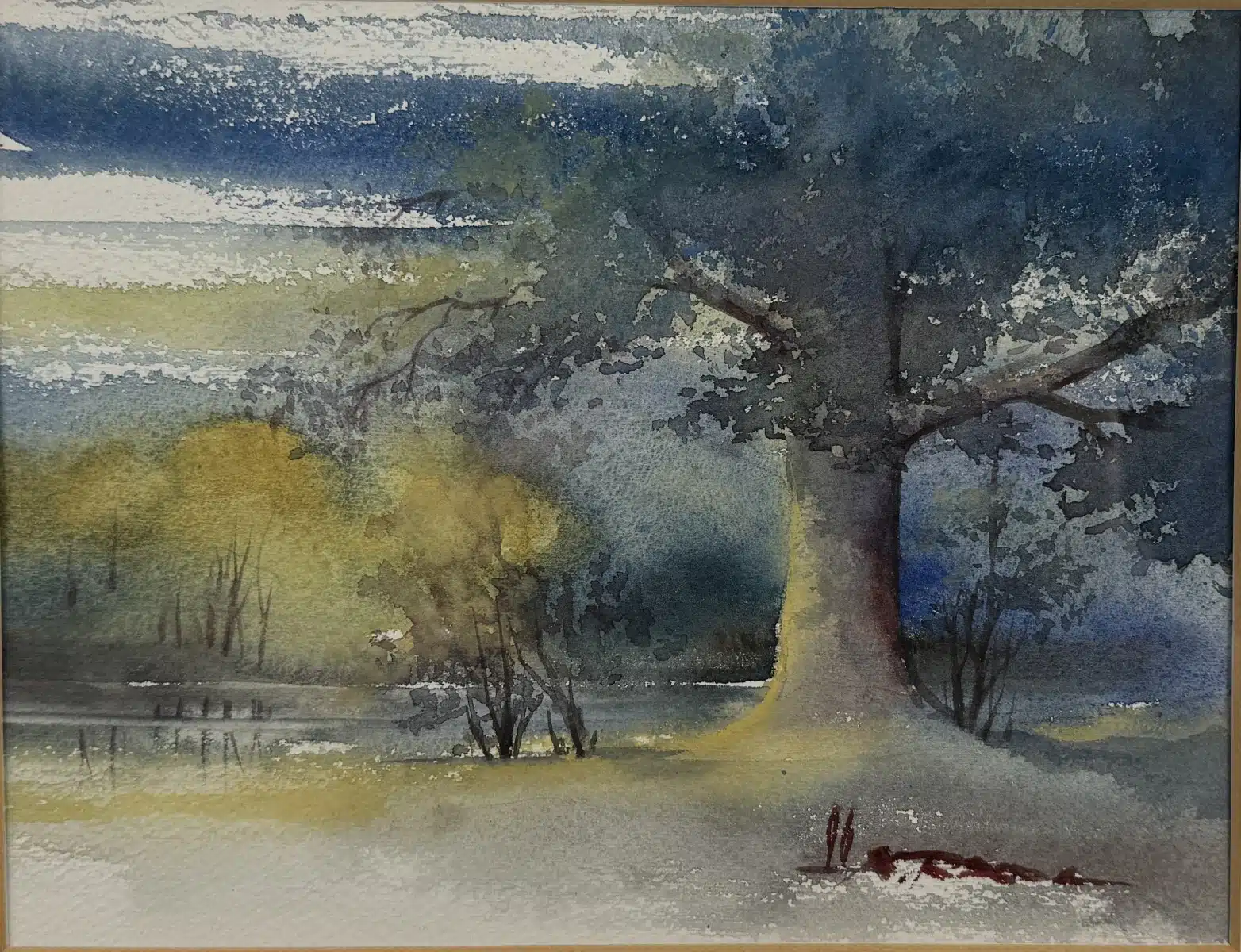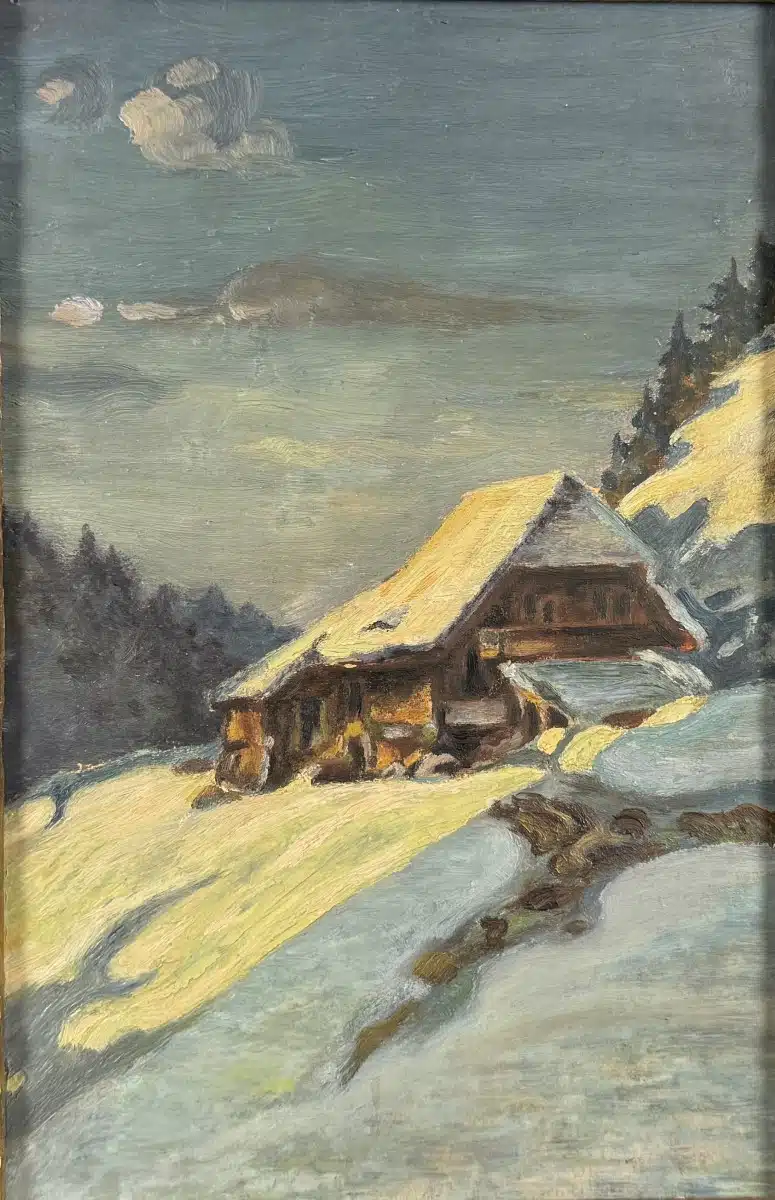 • Winterlandschaft, Öl auf Karton, 26×17 cm gerahmt, gesamt 34×25 cm