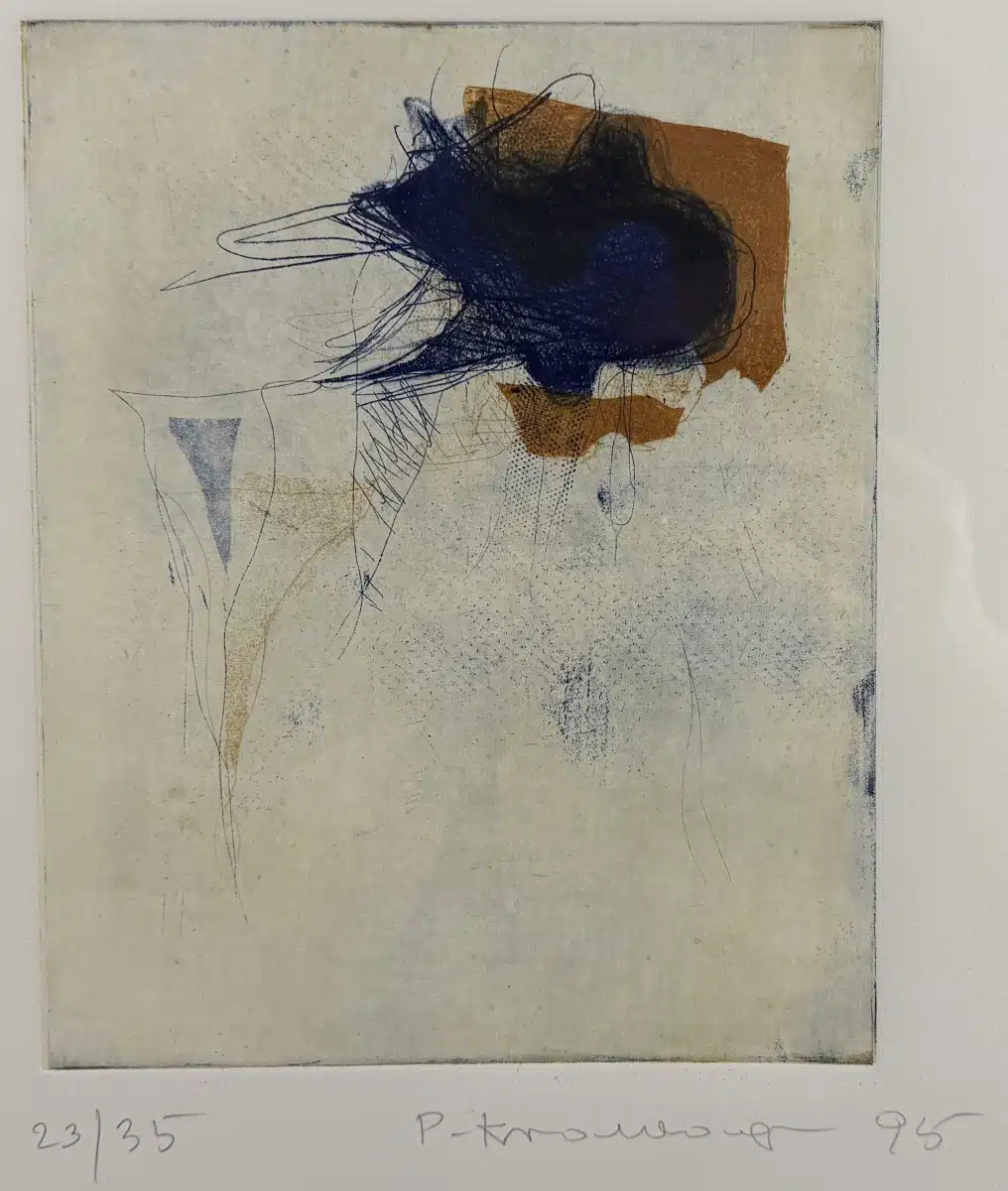 • Peter Krawagna (Klagenfurt 1937 geb.) Abstrakte Radierung auf Fabriano Bütten, 23/35, signiert, datiert 1995, 24,5×20 cm gesamt 56×41 cm, mit Zertifikat Arthaus Innsbruck
