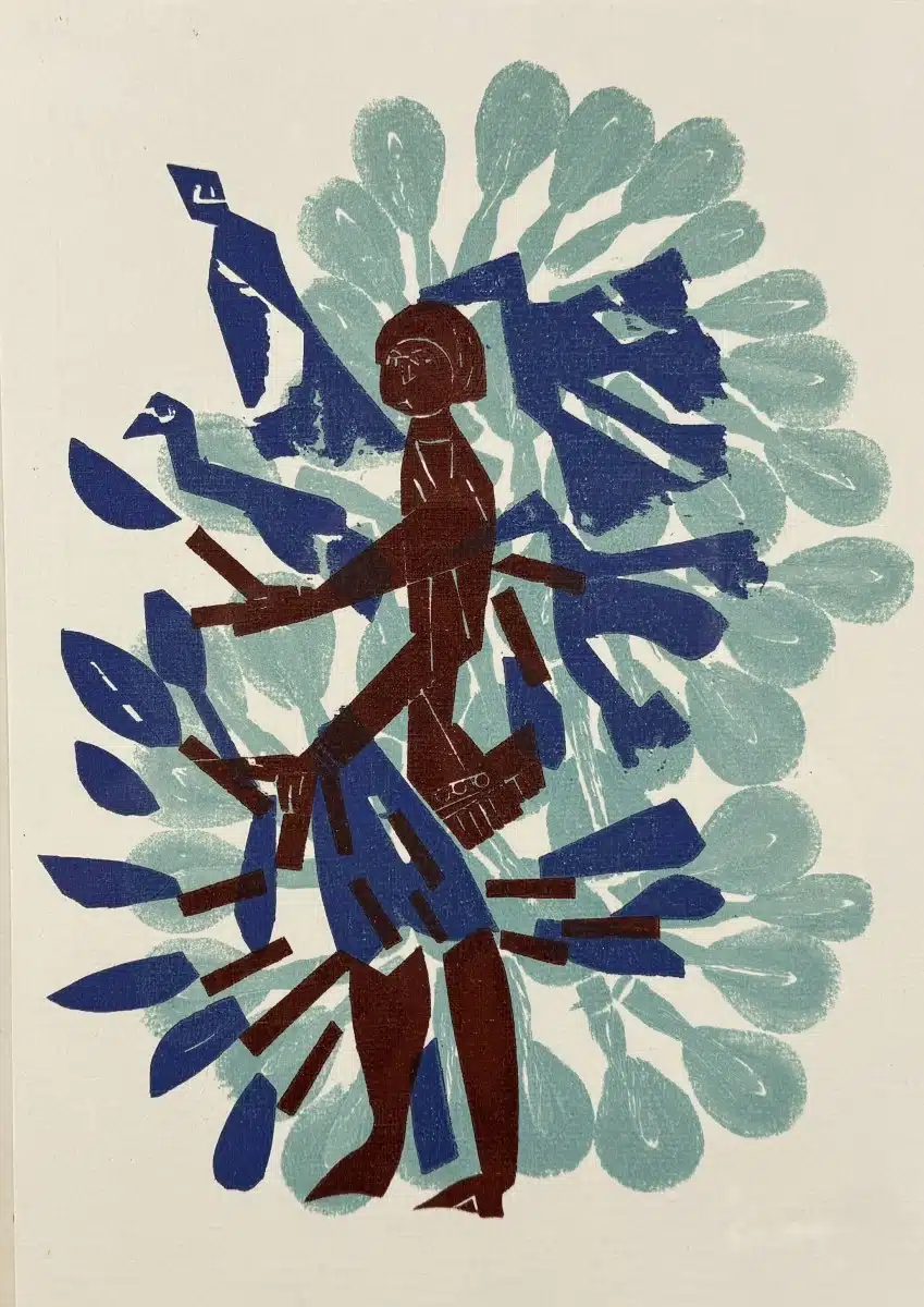 • Hap Grieshaber (Rot/OÖ 1909-1981 Achalm) „Figurale Darstellung“, Farbholzschnitt, ca. 34 x 24 cm, gesamt 40×30 cm