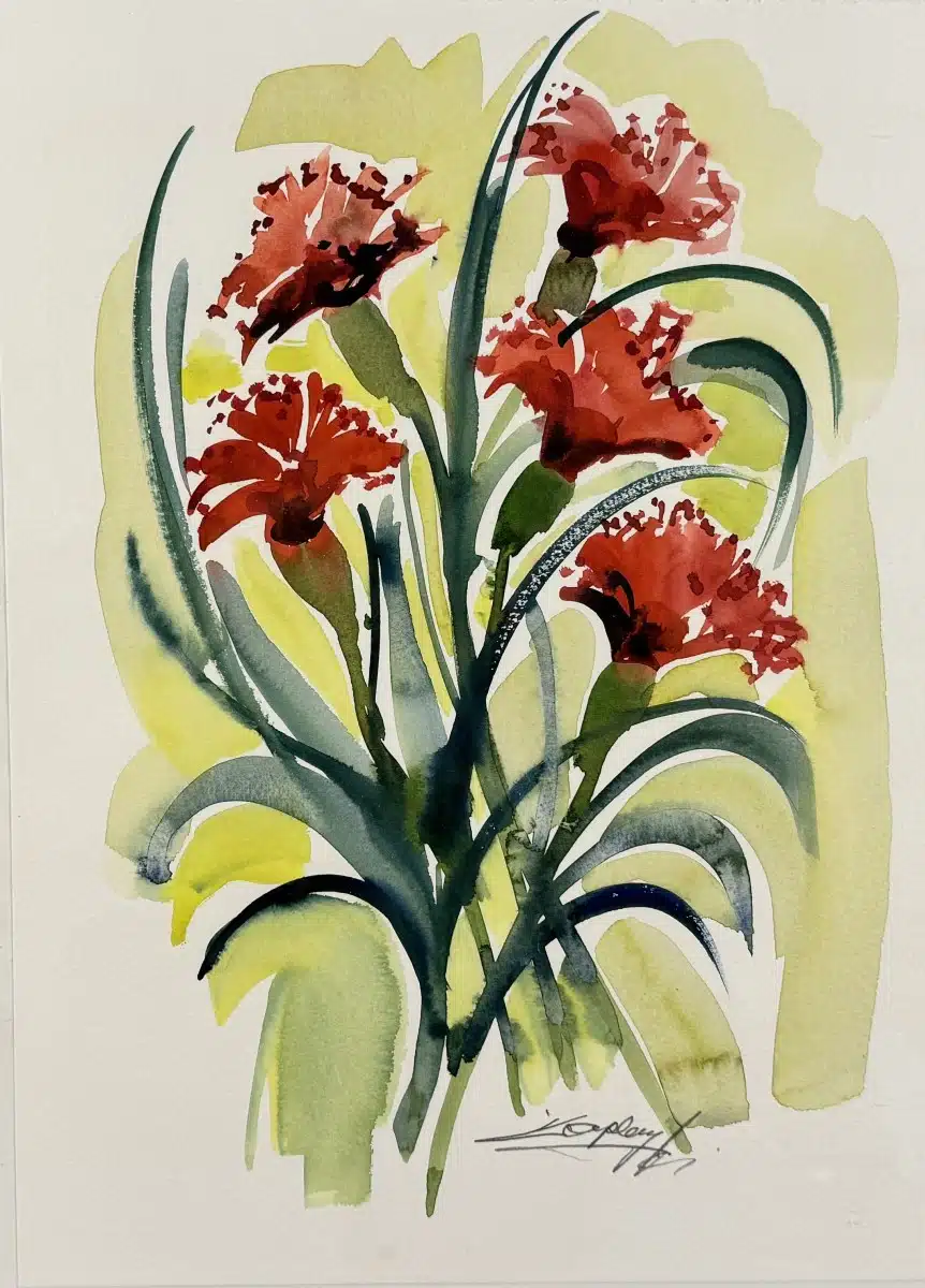 • Franz Kaplenig (Kötschach-Mauthen 1924-2007 Klagenfurt) Aquarell rote Nelken, signiert, 32×25 cm, verglast, gesamt 40×30 cm