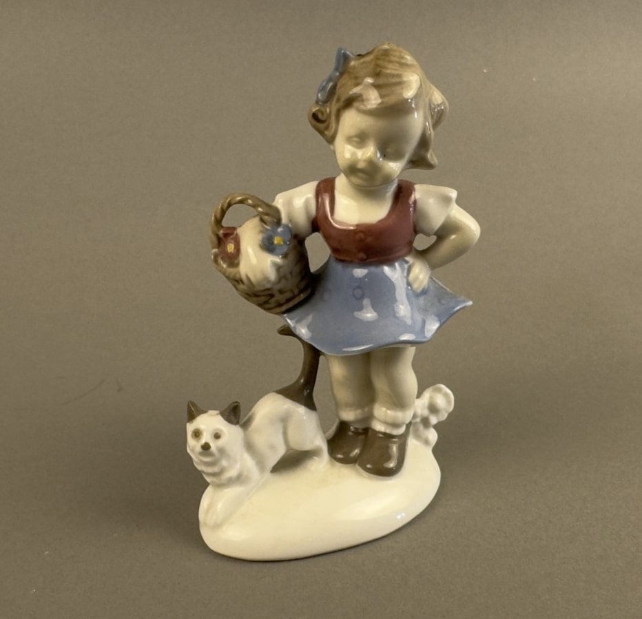 •  Lippelsdorf Porzellan Mädchen mit Katze Porzellan Figur Foreign 9421