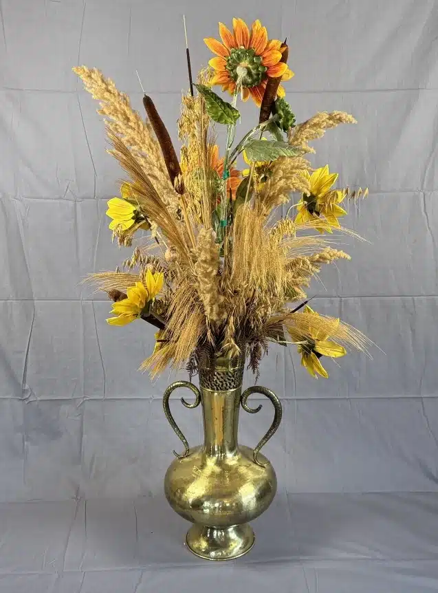 • Großer dekorativer Vintage Messing – Krug mit Blumen Ges.Höhe 165 cm