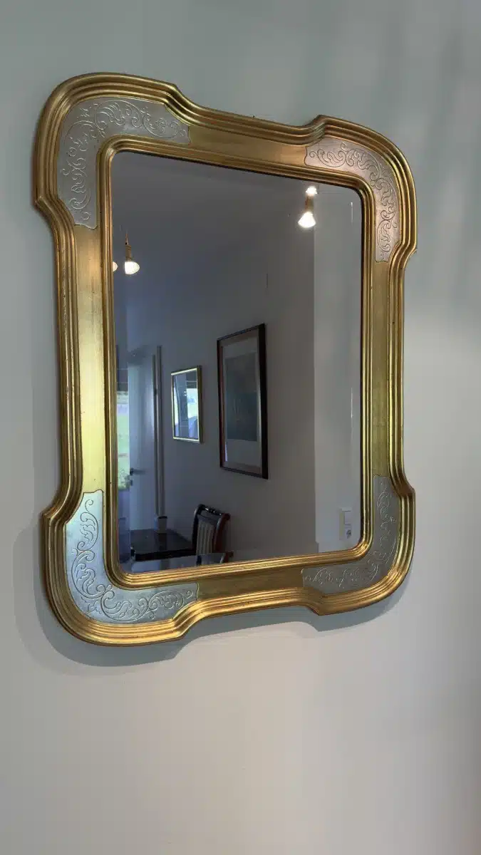 • Goldfarbener Französischer Wandspiegel mit Facettenschliff B 90 cm H 70 cm