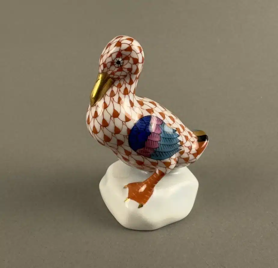 • Ente, Herend, Porzellan, bunt und gold staffiert, Höhe 6,5 cm, blaue Marke