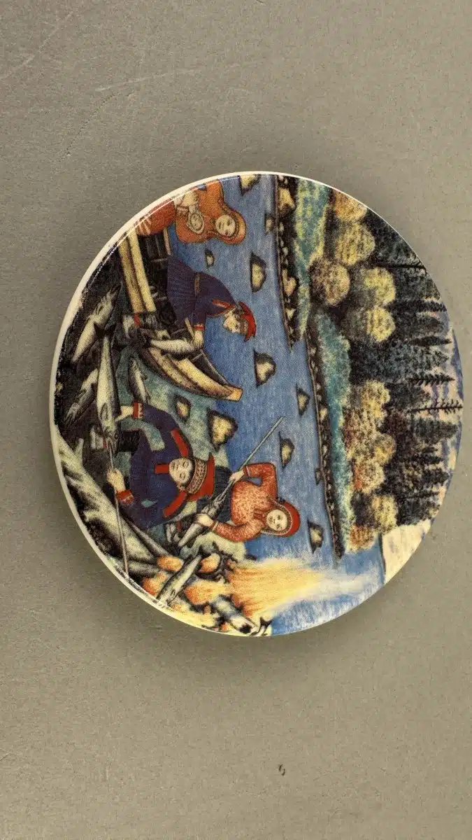 • Arabia Finland, A.Alariesto Sammelteller 1983 Fischerbraten Dm. 12 cm