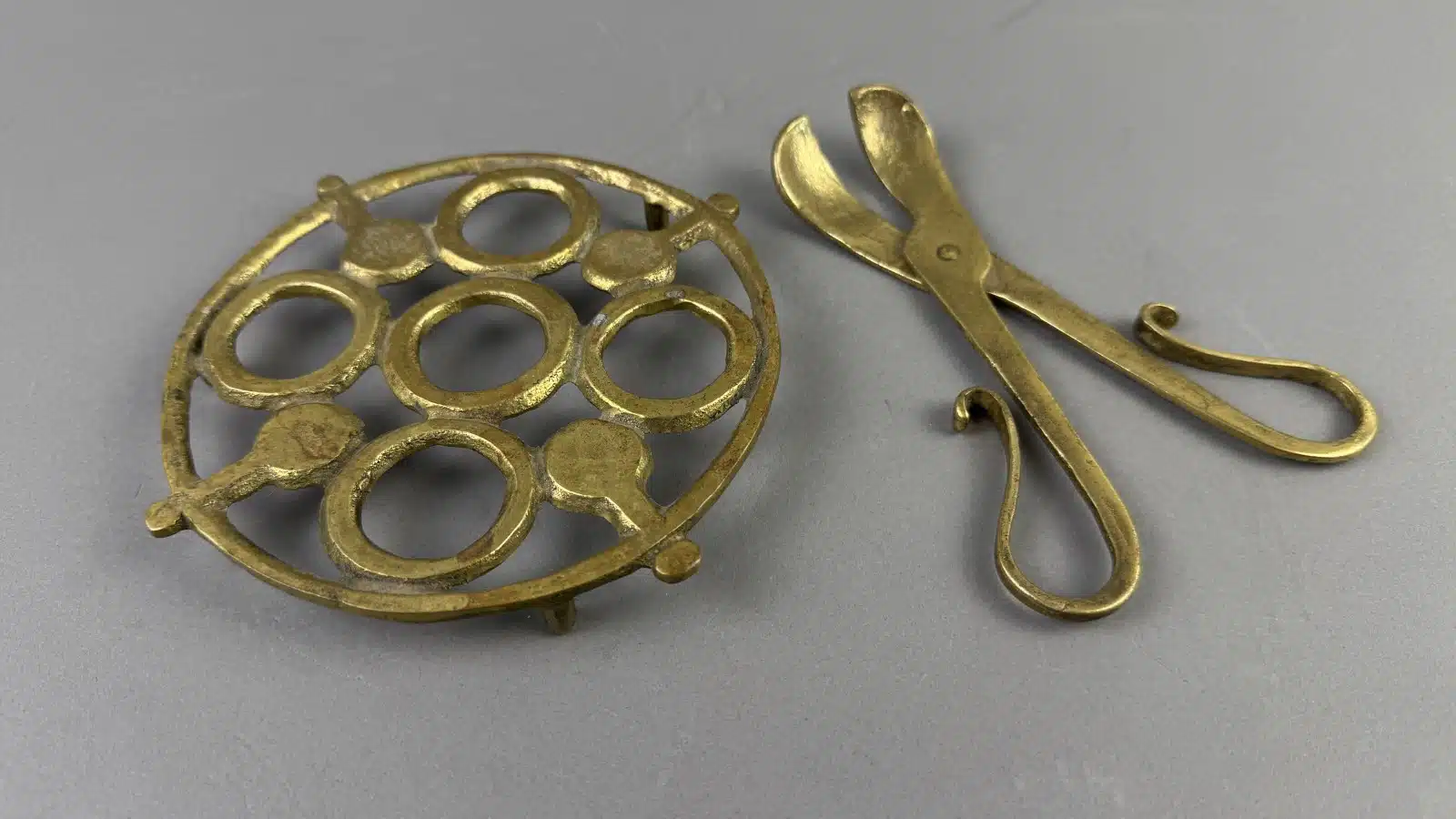 • Heinz Goll – Messing – Untersetzer und Messingschere – Ausführung Gießerei „Kurt Jesch“ Bleiburg, Dm. 15 cm