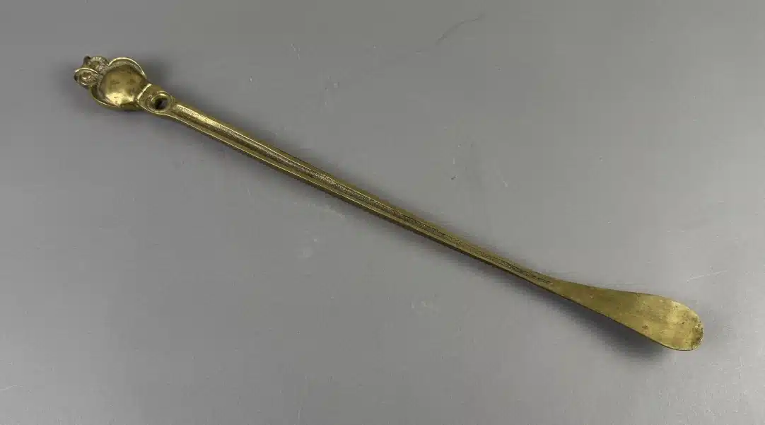 • Heinz Goll – Messing – Schuhlöffel mit Eulenkopf – Ausführung Gießerei „Kurt Jesch“ Bleiburg, L. 52 cm