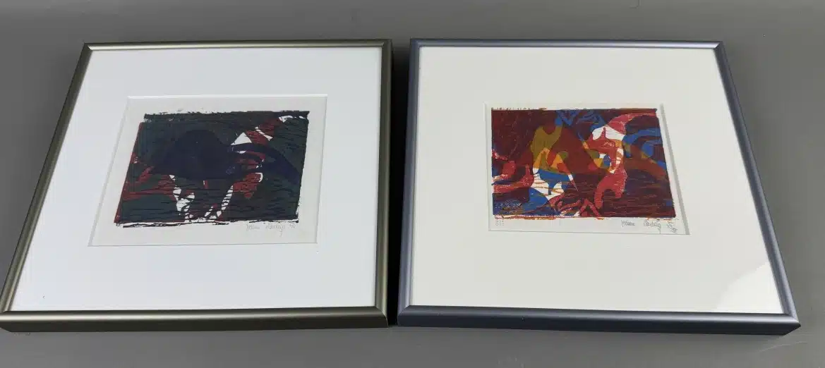 • 2 Bilder Mischtechnik signiert, datiert 1994 18×12 cm – Gesamt 27×29 cm