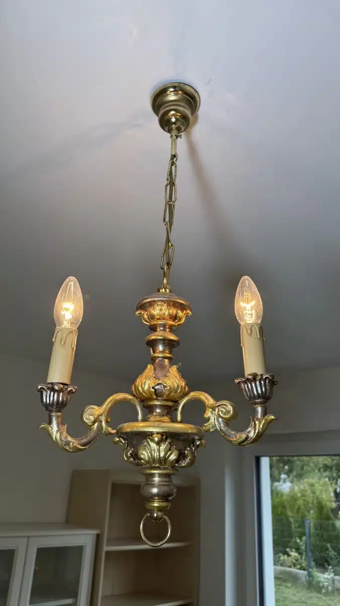 • Biedermeier Stilluster, Holz – 3 Flammig H70 cm Dm. 30 cm