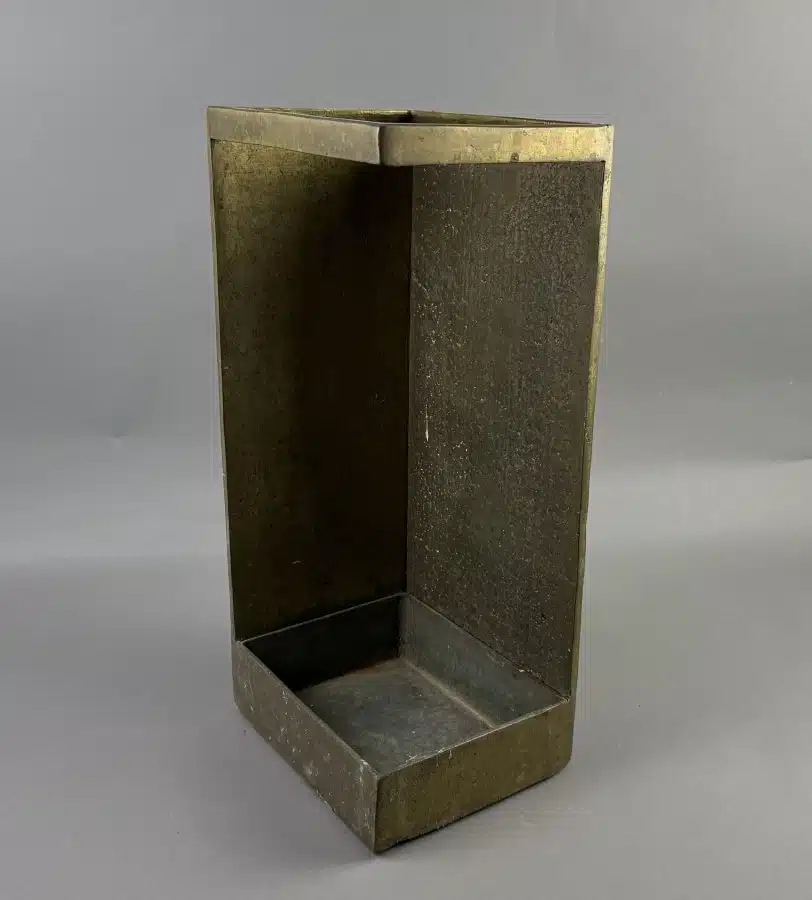 • Heinz Goll – massiver brutalistischer Messing – Schirmständer ca. 8 kg. – Ausführung Gießerei „Kurt Jesch“ Bleiburg, 21×27 H.65 cm