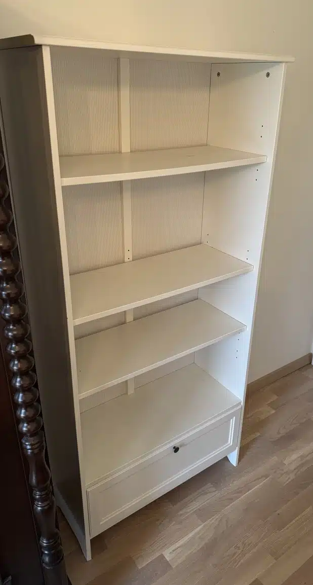 • Weißes Regal mit Schublade B.80 cm T.34 cnm H.166 cm SZ