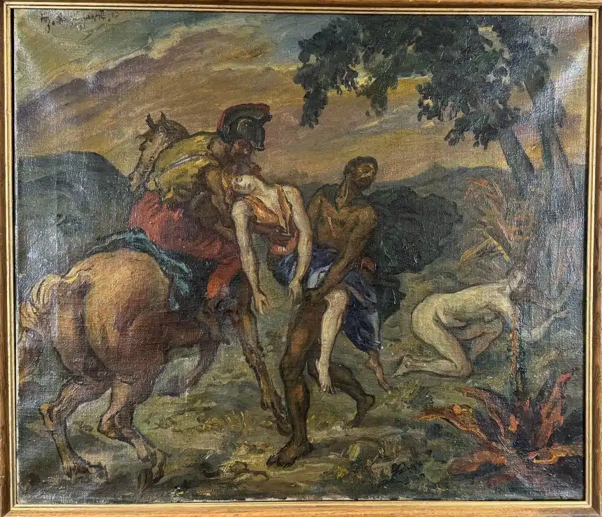 • Franz REINHARDT (1881 in Deutschland bis 1946 ) Raub der Sabinerinnen, 58×60 cm Rahmen 81×72 Provenienz. Ex Dorotheum Los 632 16.10.2003 Zuschlagspreis 650 €Schätzpreis: 1.000 € – 1.200 €