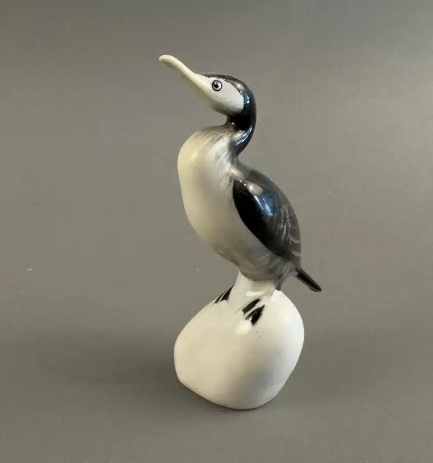 • Vintage Hollohaza Porzellan Cormoran Vogel