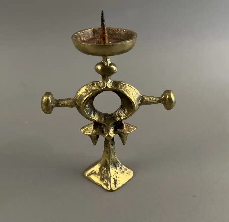 • Heinz Goll – Messing . Brutalistischer Kerzenständer Ausführung Gießerei „Kurt Jesch“ Bleiburg, H 20 cm