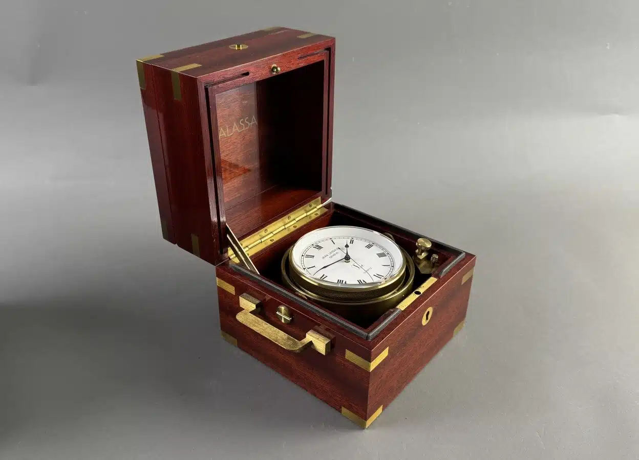 • Seltener Marine – Chronometer von Jean Lassale Material Acajou, um 1970 Batteriebertrieben – Funktion gegeben – siehe Video