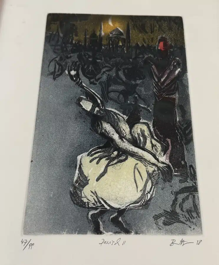 • Karl Brandstätter (Lautz bei Villach 1946 geb.) Lithographie 8/100 – 12×8 cm verglast, gerahmt Gesammt 31×27 cm