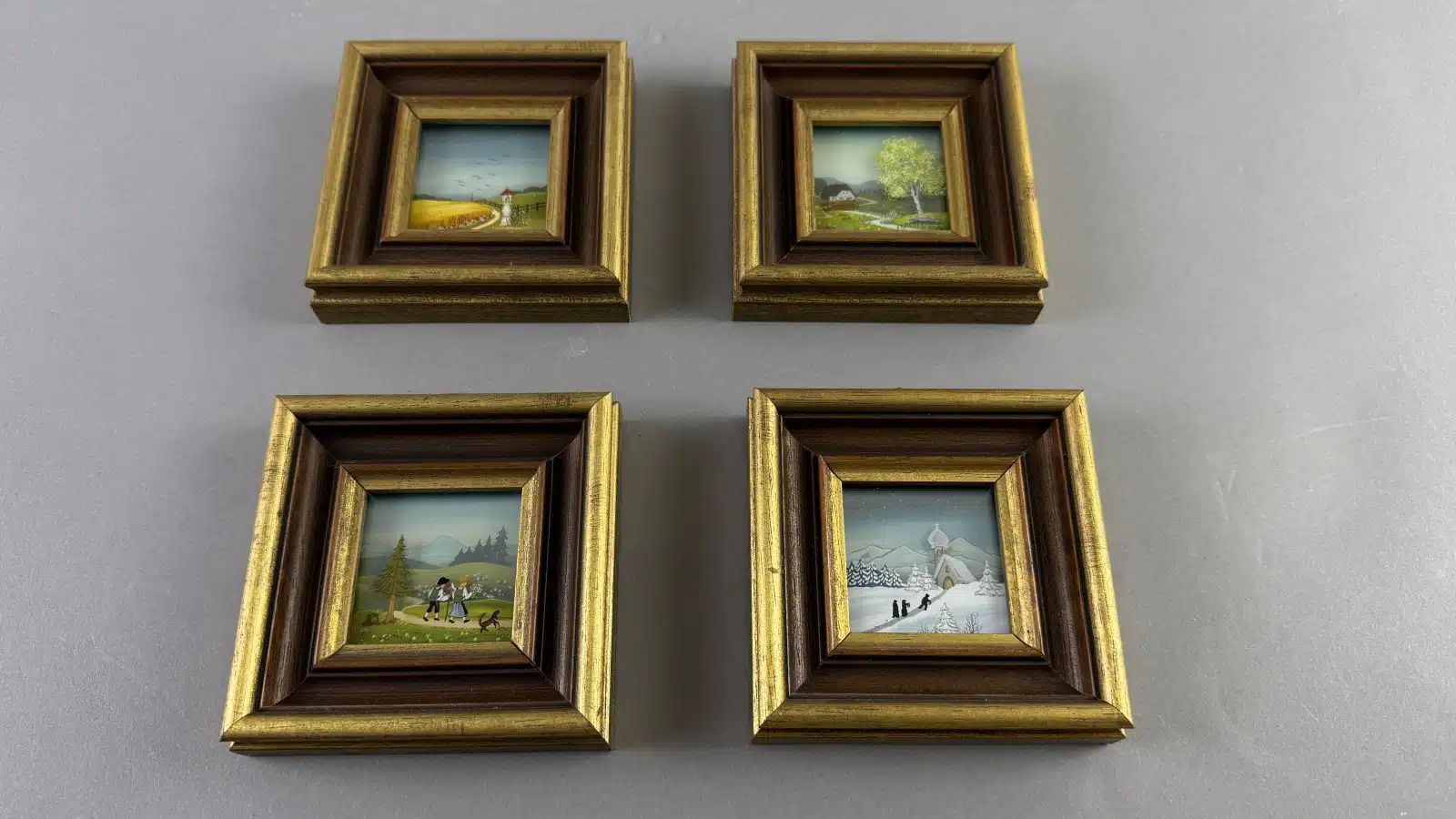• 4 Ölbilder Landschaftsbild- Frühjahr Sommer Herbst und Winter 12×12 cm