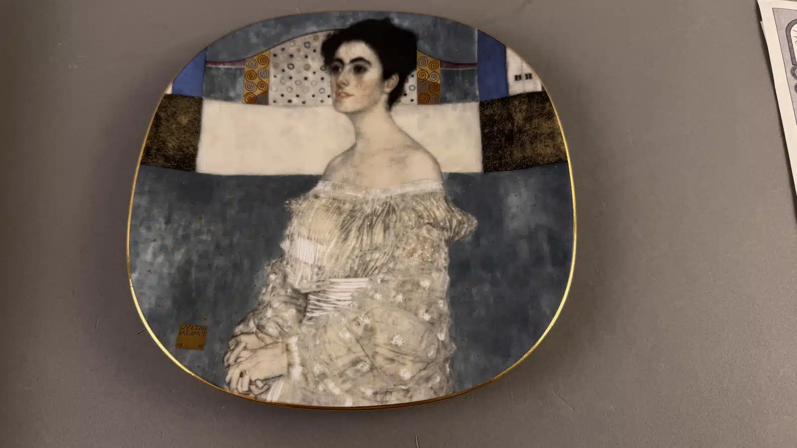 • Wandteller, nach Gustav Klimt „Frauenbildnisse“, Lilienporzellan Austria, weiß glasiert, Farbdrucke goldgerändert, 21 x 21 cm, limitierte Auflage, nummeriert und beschriftet, mit Zertifikat, guter Erhaltungszustand OVP