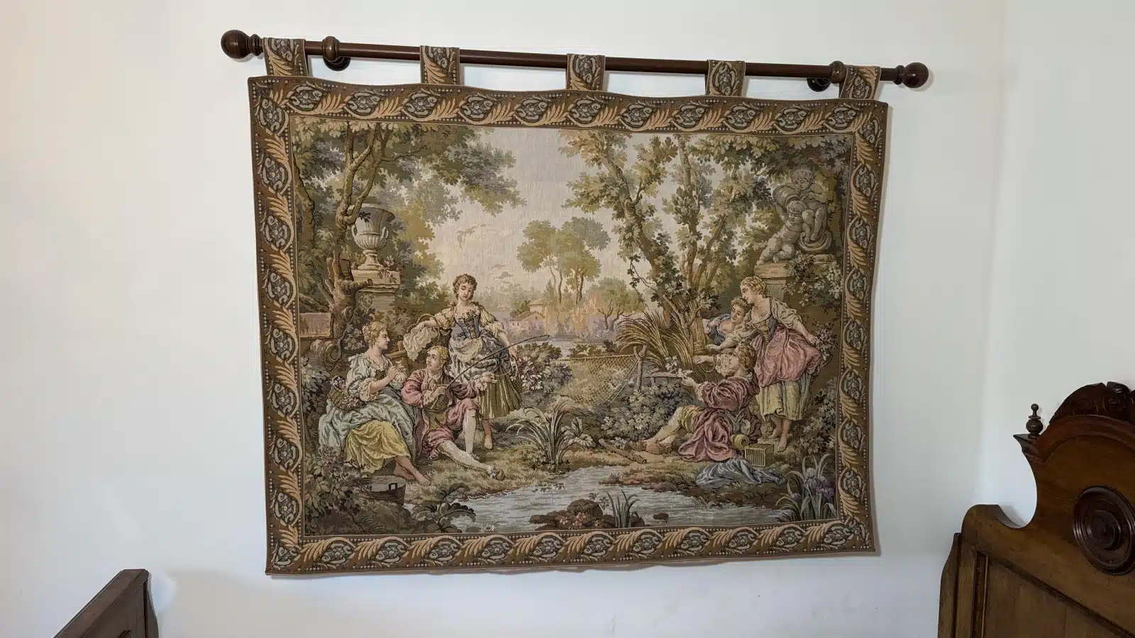 • Leinwandgemälde Wandteppich -gewebter Wandteppich Europäische Galantries Szene auf Holzstange 146×110 Stange 156 cm