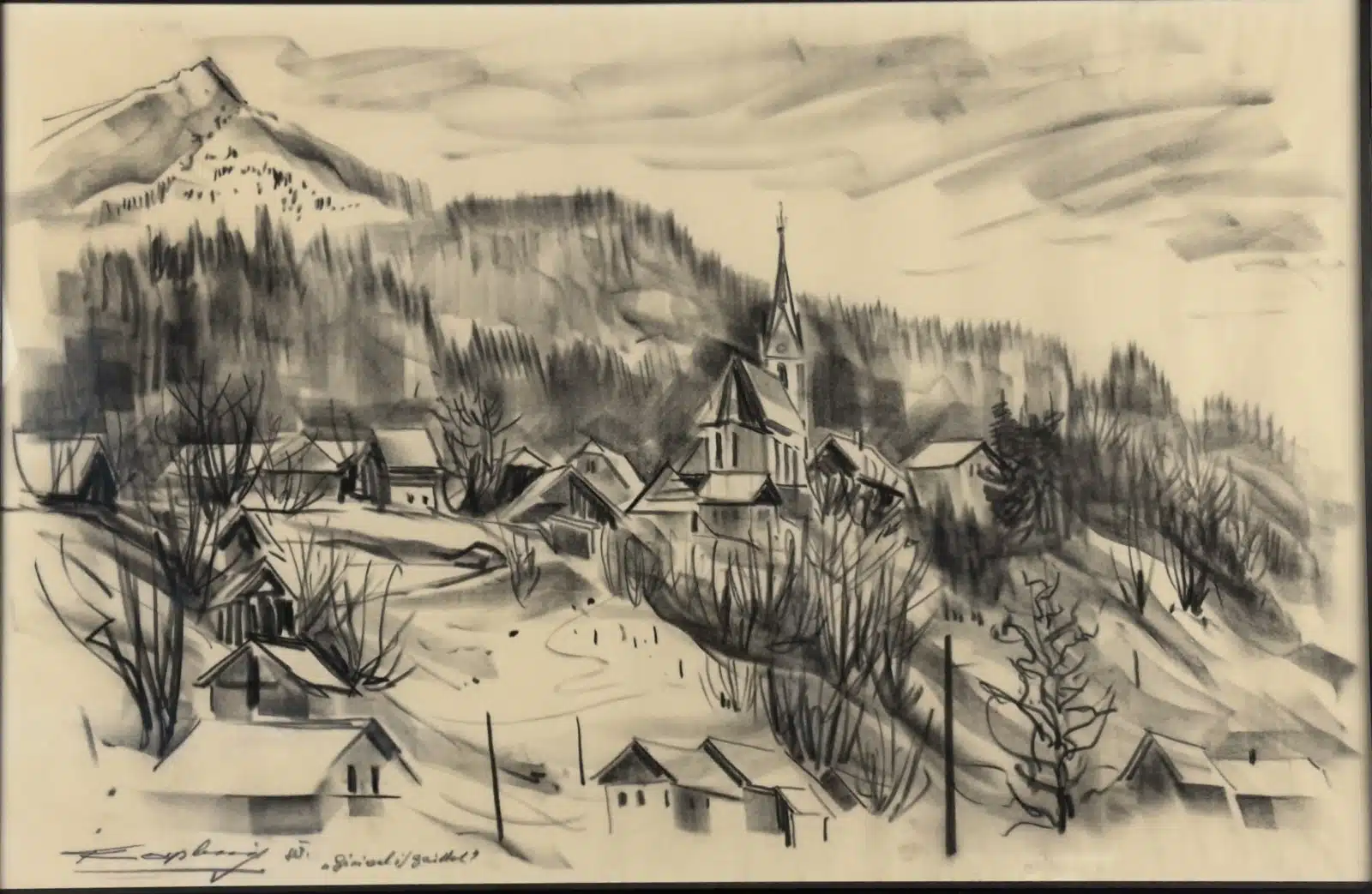 • Franz Kaplenig (Kötschach-Mauthen 1924-2007 Klagenfurt) signiert Kaplenig,Kohle, im Gailtal, 73×49 cm