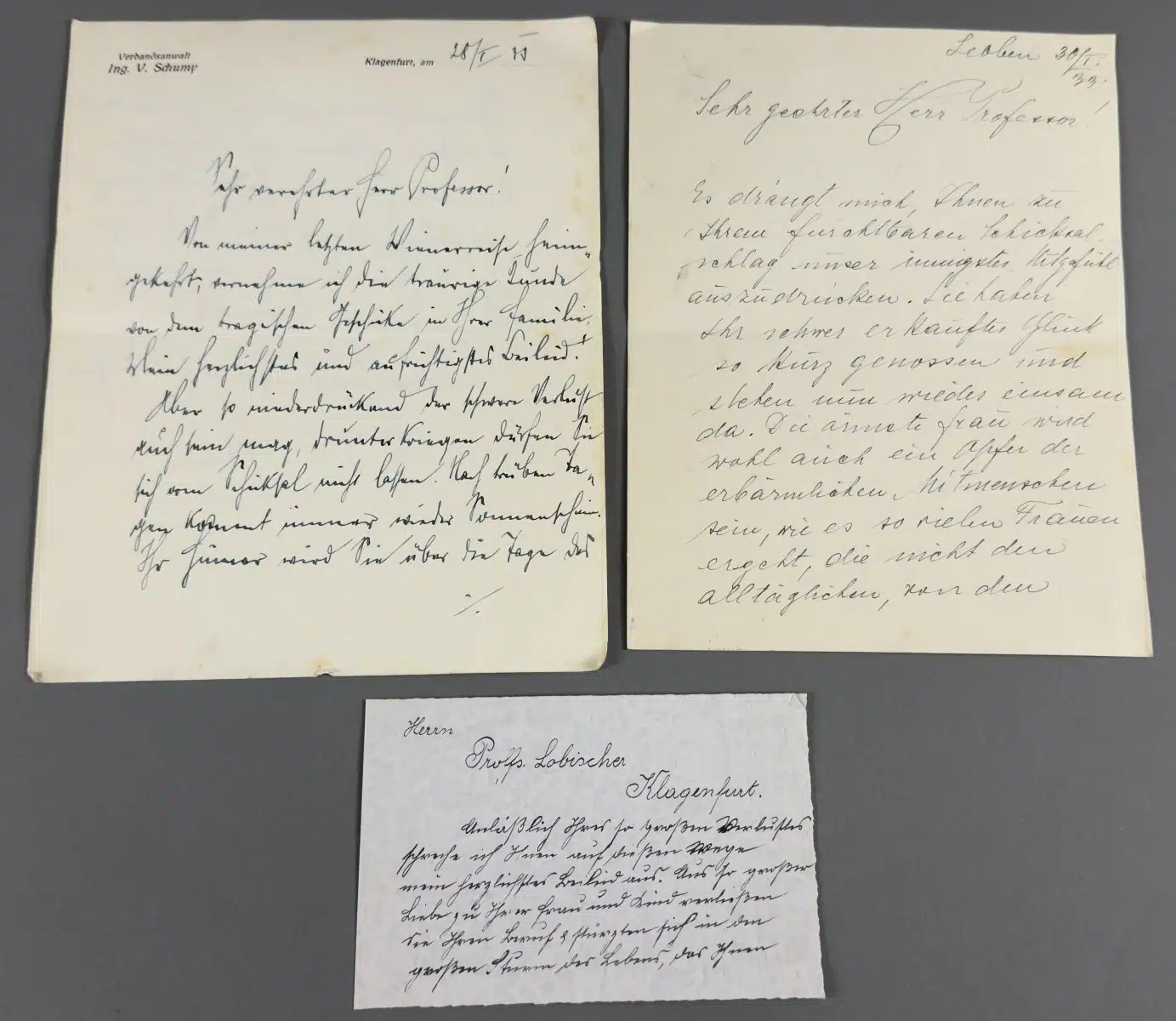 • Switbert Lobisser – Aus persönlichem Besitz – 3 Stück Kondolenzschreiben zum Ableben seiner Ev 1933