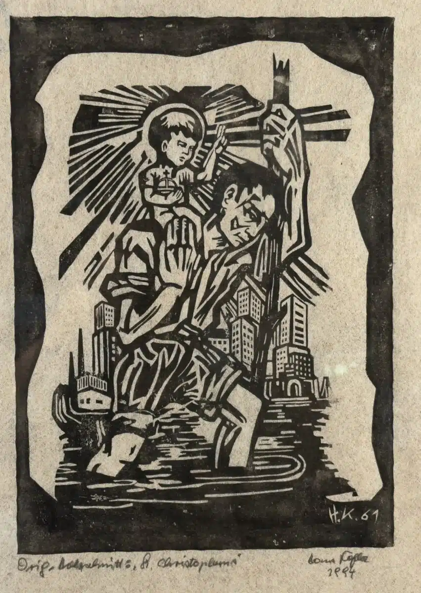 • Hans Kofler Holzschnitt, St. Christophorus,signiert, 39×31 cm