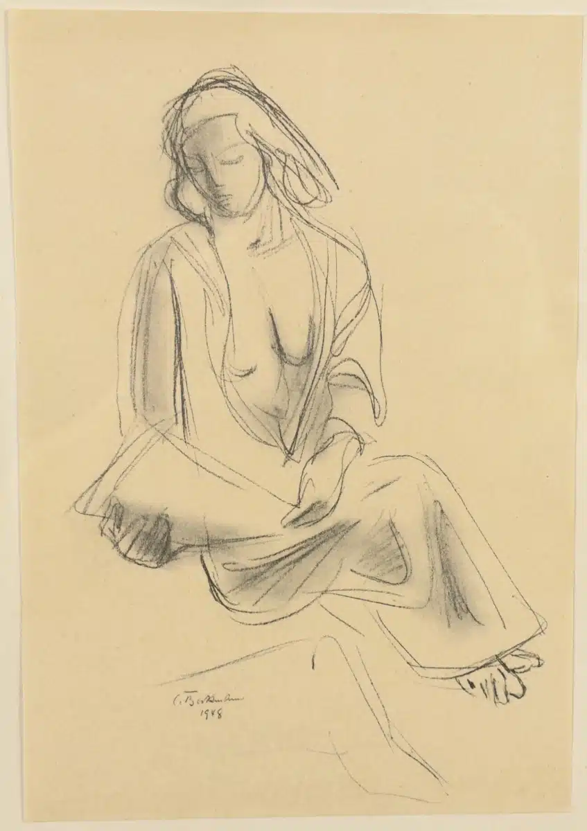 • Zeichnung, Studie einer Frau, unleserlich signiert, 25×18 cm Rahmen 36×28 cm