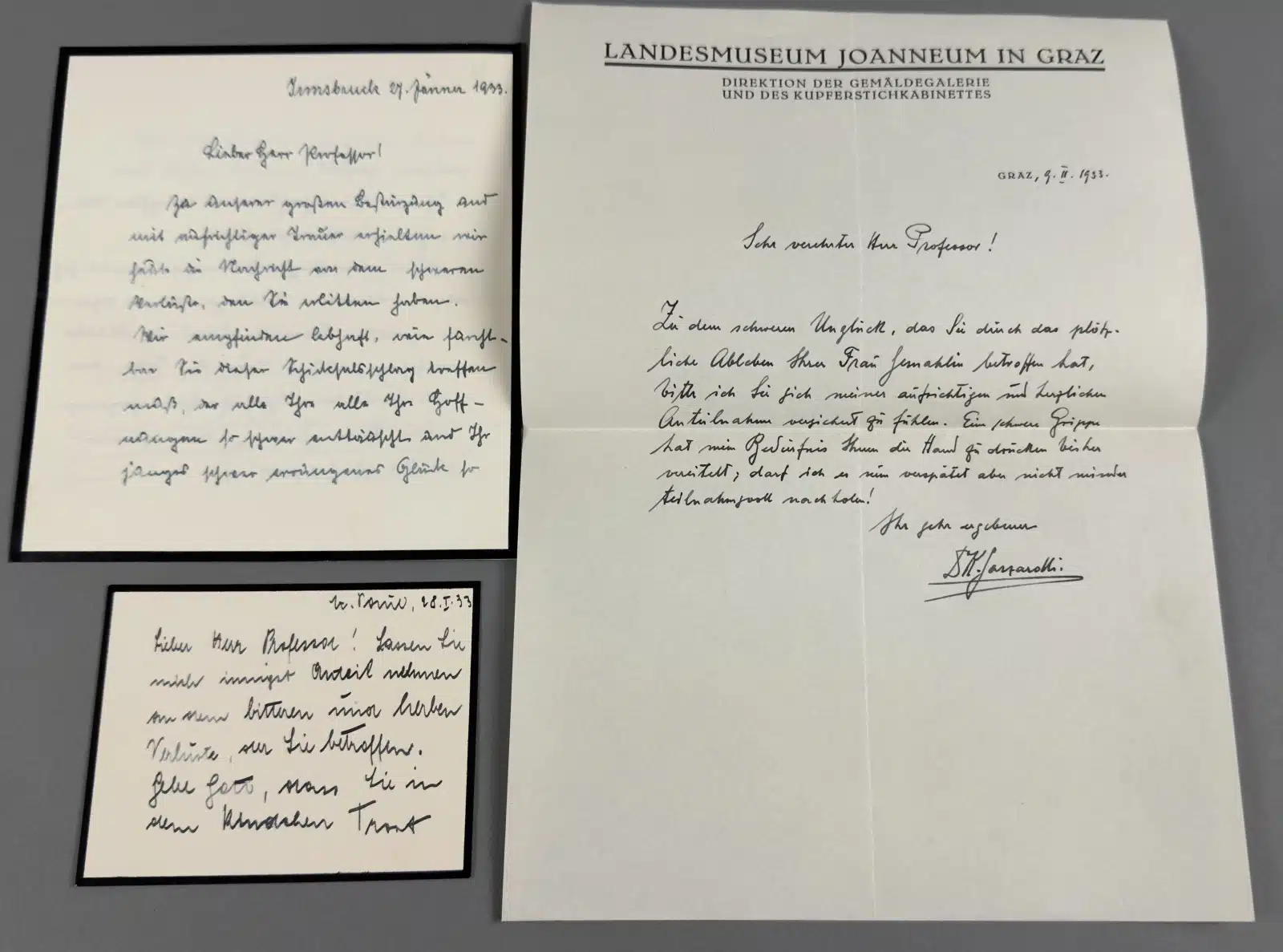 • Switbert Lobisser – Aus persönlichem Besitz – 3 Stück Kondolenzschreiben zum Ableben seiner Ev 1933