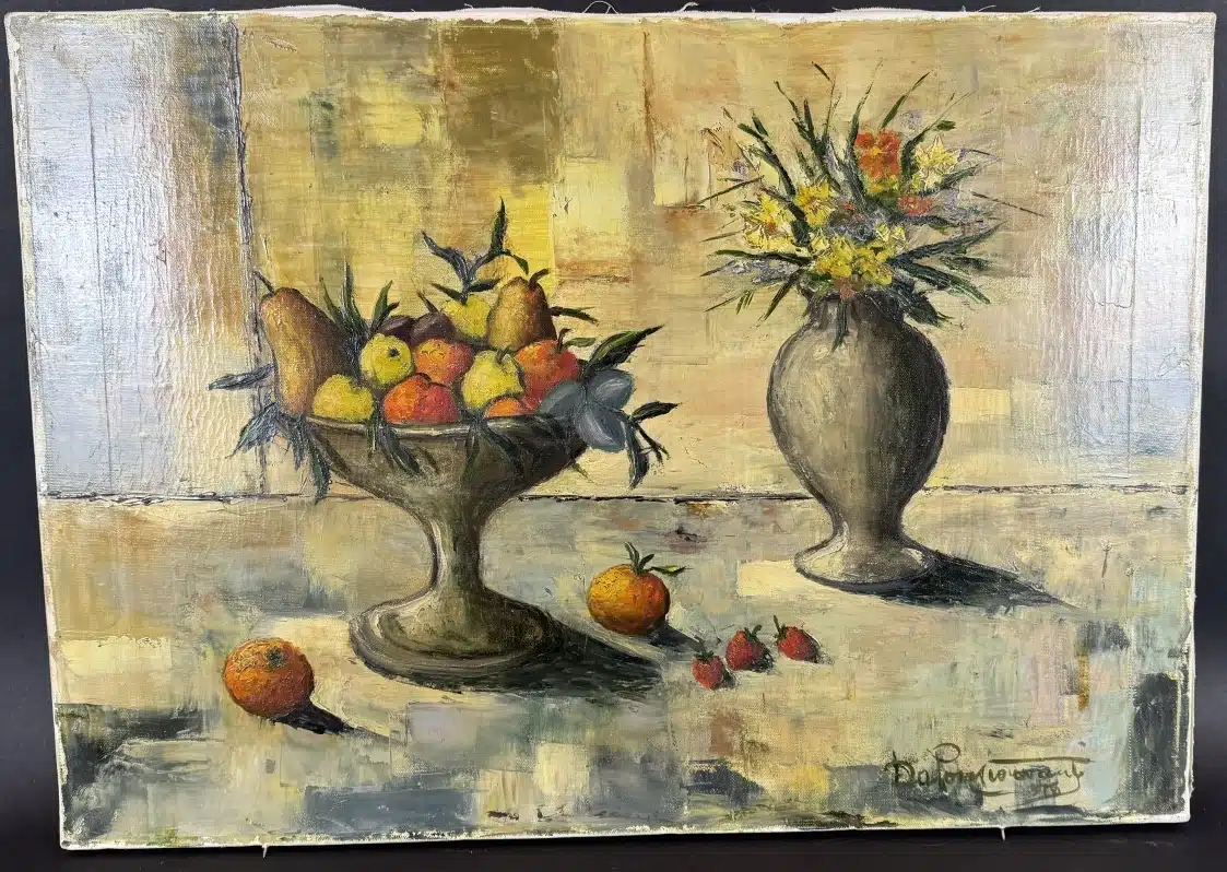 • Mischtechnik auf Leinwand, unleserlich signiert, 70×50 cm