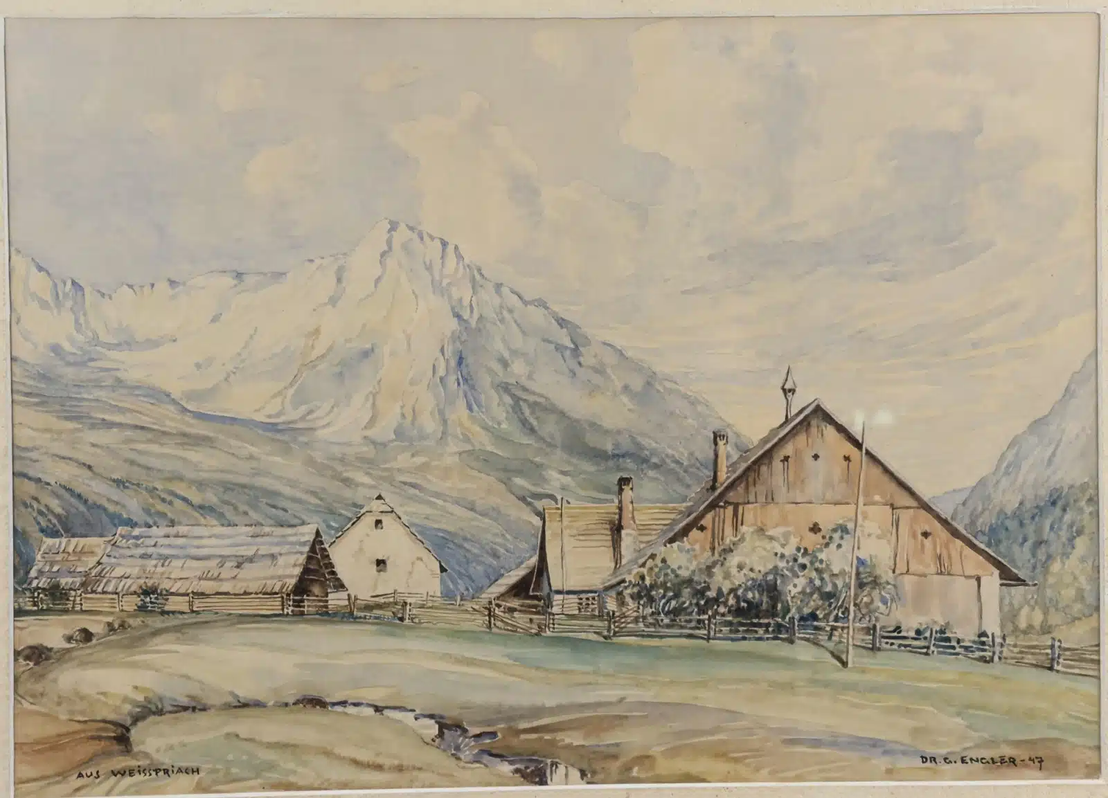 • Dr. G Engler, Aquarell, Weisspriach, signier, datiert 47, 37×27 cm Rahmen 53×42 cm