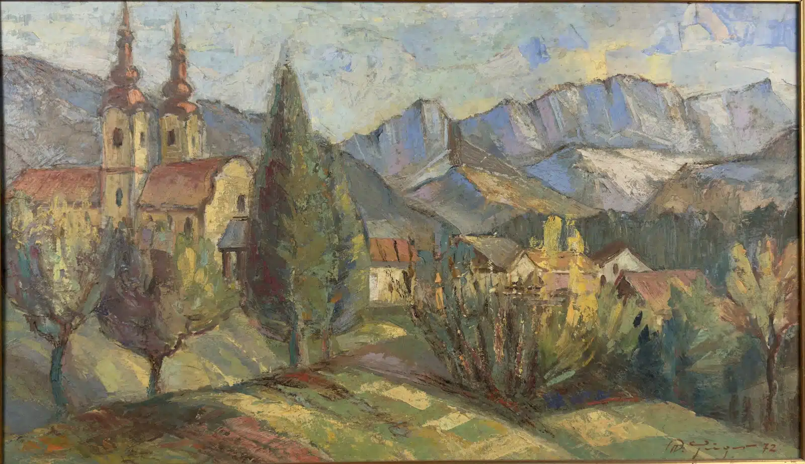 • Willi Geiger (Villach 1916-2007) Öl auf Platte, Maria Rain, signiert, datiert, 73×42 cm Rahmen 83×51 cm