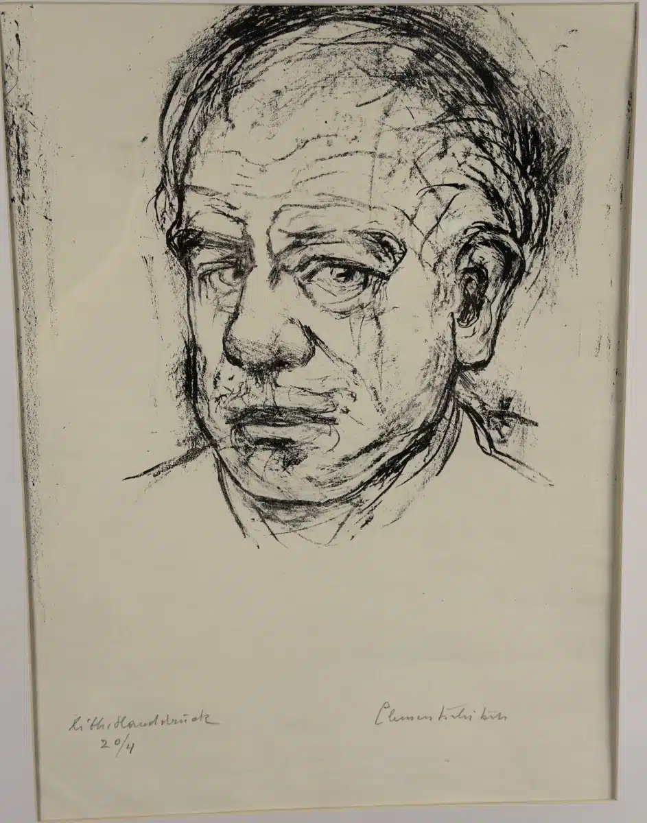 • Arnold Clementschitsch (Villach 1887-1970) „Selbstportrait“, signiert Clementschitsch, Lithografie-Handdruck 20/4, 39×29 cm Rahmen 64×50 cm