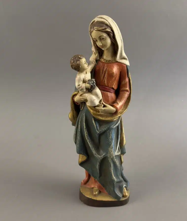 • Holzfigur – Heiligenfigur – Madonna Mit Kind H27 cm