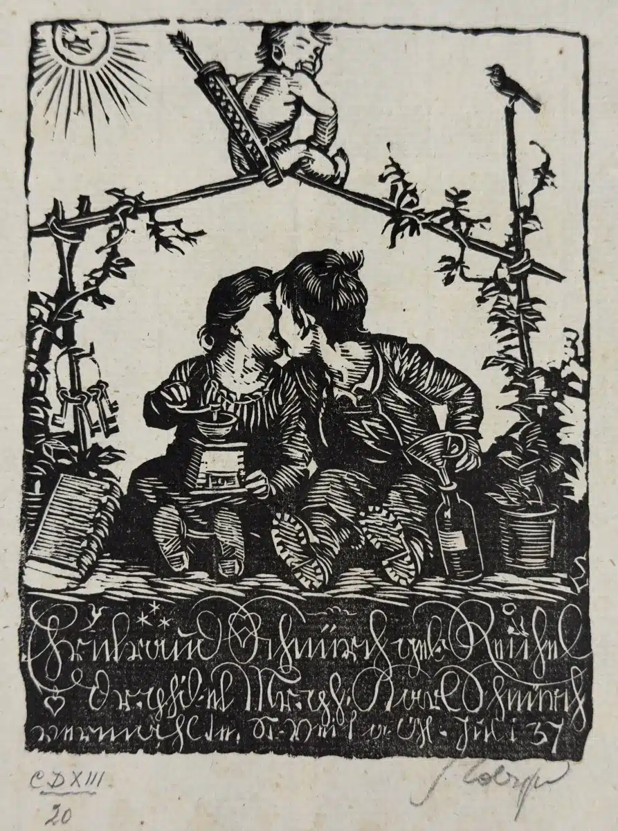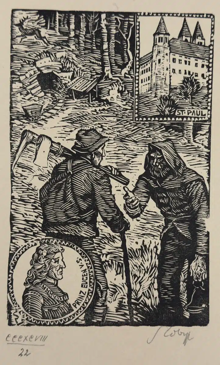 • Switbert Lobisser – Holzschnitt – auf altem Brief Op. 182 Exlibris Dr. Friedl Rainer 21×36 cm signiert nummeriert