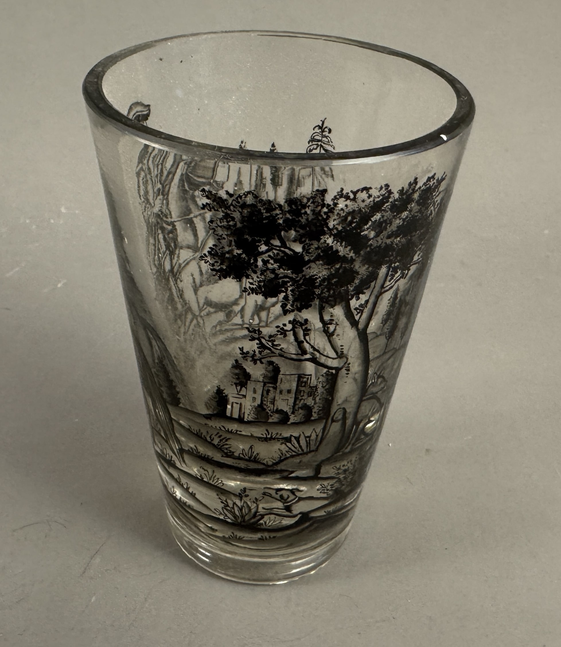 • Switbert Lobisser – Aus persönlichem Besitz – Pokalglas, Schwarzlotmalerei, um 1910 H 13 cm