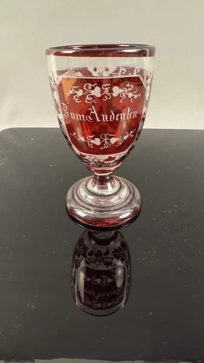 • Switbert Lobisser – Aus persönlichem Besitz – antiker Fußbecher, Zum Andenken, H 13 cm