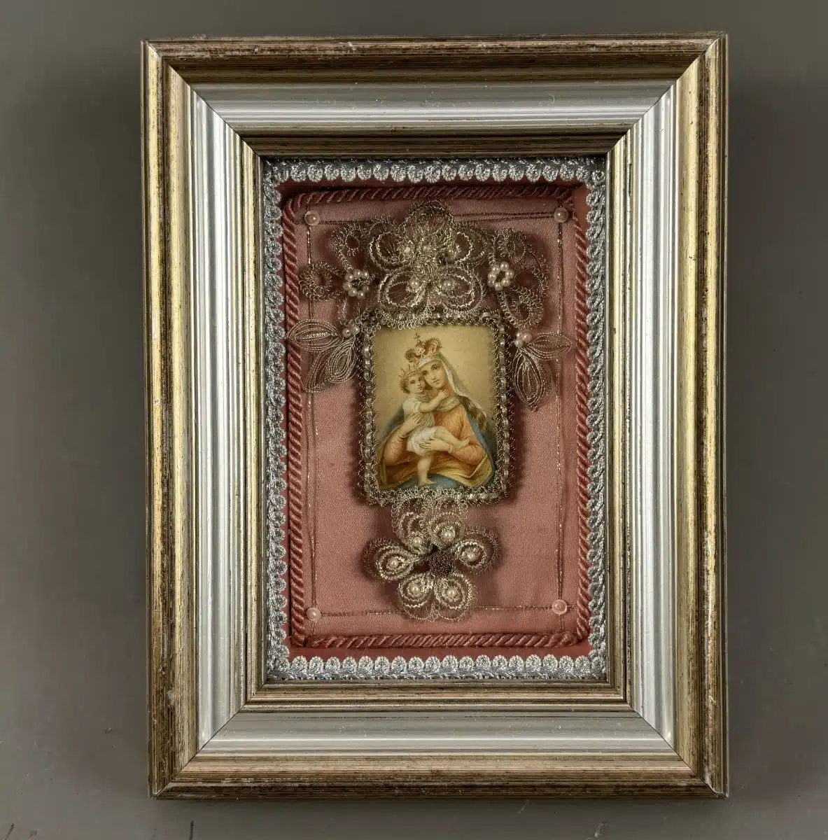 • Switbert Lobisser – Aus persönlichem Besitz – Klosterarbeit, traditionelle religiöse Handwerkskunst 23×17 cm