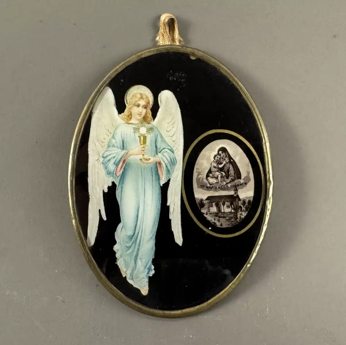 • Switbert Lobisser – Aus persönlichem Besitz – antikes religiöses Medaillon, 19. Jahrhundert, Maria mit dem Jesuskind H 5,5 cm