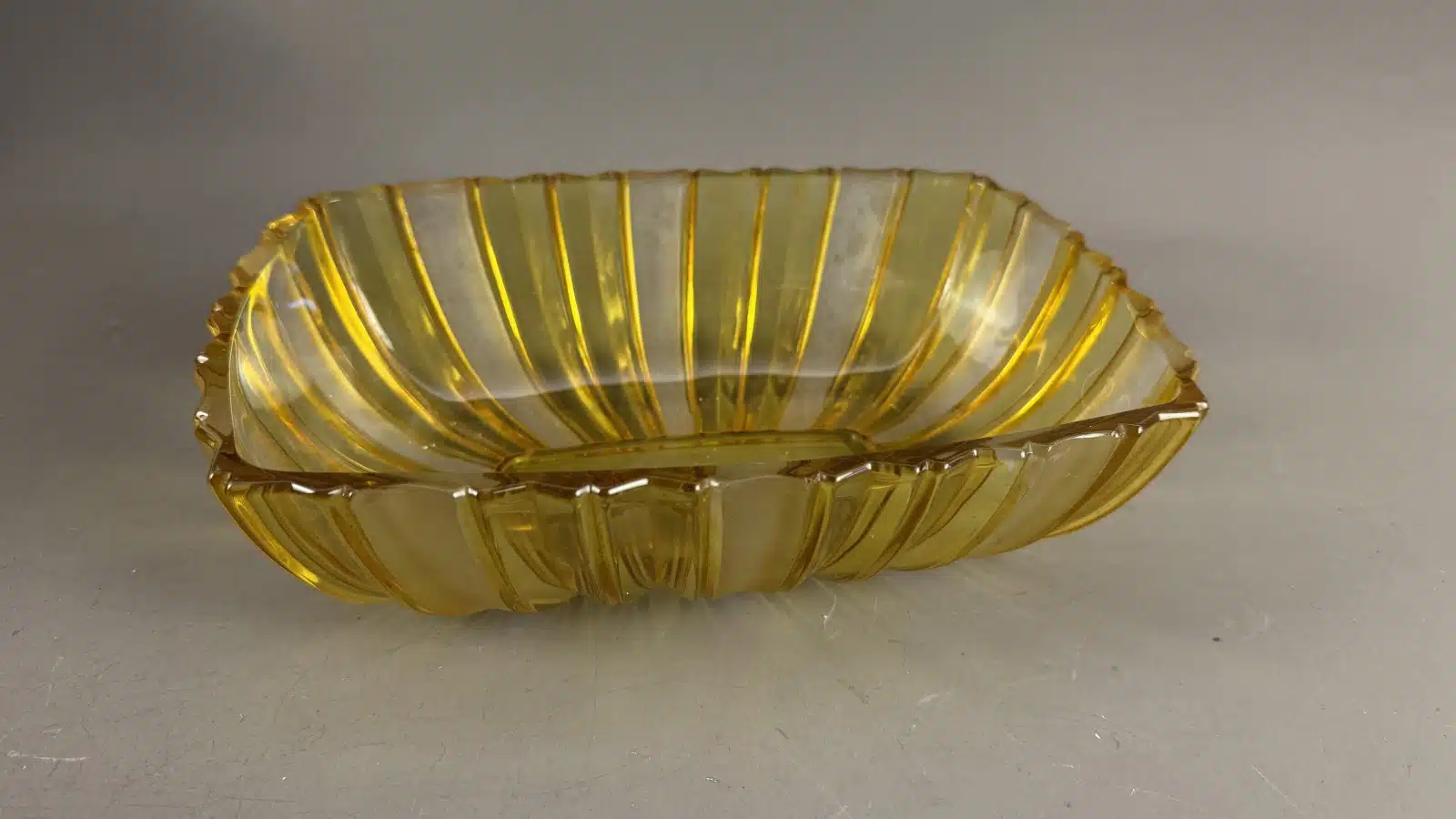 • Switbert Lobisser – Aus persönlichem Besitz – Art-Déco, bernsteinfarbene Glasschale 25×18 cm H 7 cm
