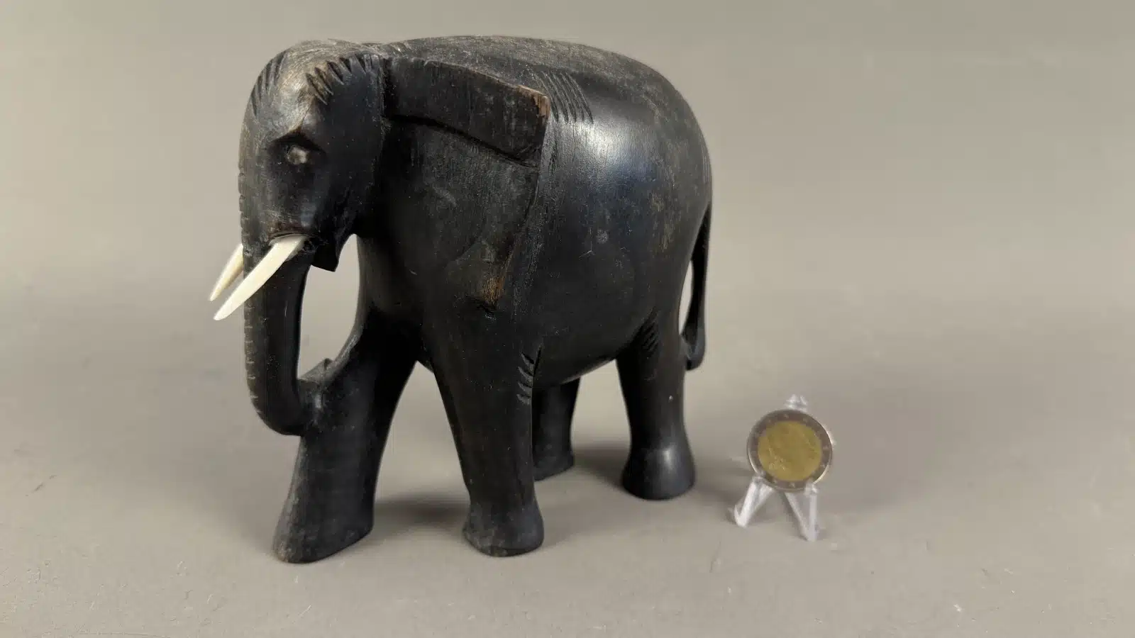 • Switbert Lobisser – Aus persönlichem Besitz – handgeschnitzte Elefantenfigur, Ebenholz, H 15 cm