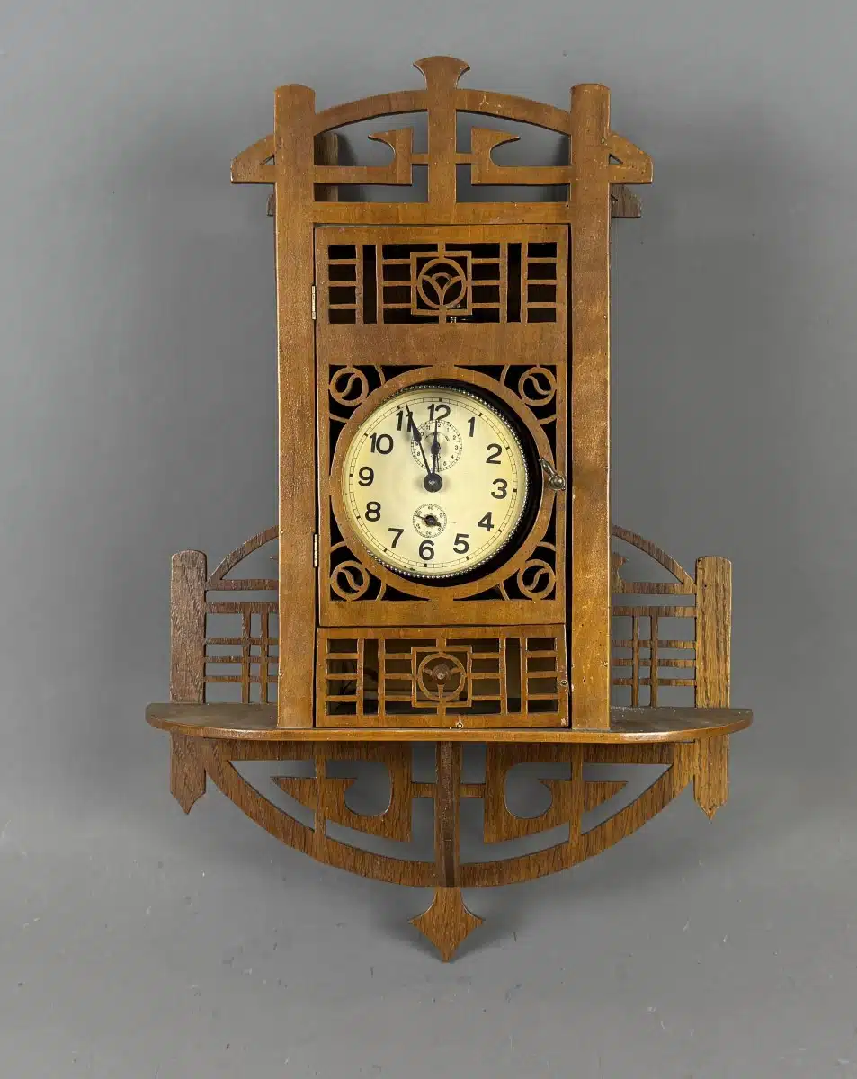• Switbert Lobisser – Aus persönlichem Besitz – antike Wanduhr, Jugendstil, um 1900 50×36 cm