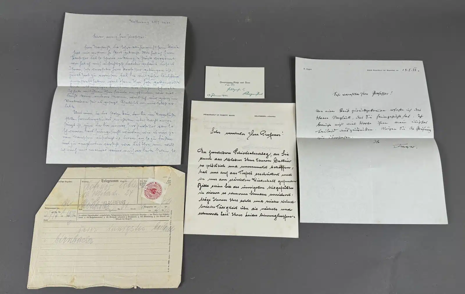 • Switbert Lobisser – Aus persönlichem Besitz – 5 Stück Kondolenzschreiben zum Ableben seiner Ev 1933