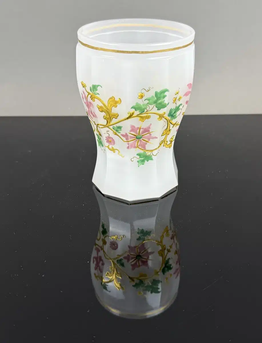 • Switbert Lobisser – Aus persönlichem Besitz – handbemalter Biedermeier – Becher mit farbigen Blütengirlanden sowie goldenem Rankenwerk verziert. H 11 cm